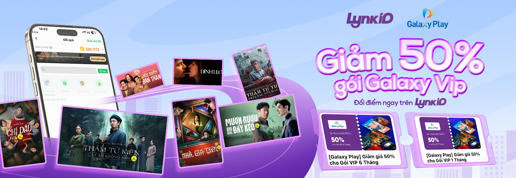 Galaxy Play phối hợp cùng LynkID mang đến ưu đãi hấp dẫn dành riêng cho khách hàng thân thiết: Giảm 50% cho Gói Galaxy VIP 1 Tháng khi đổi điểm trên ứng dụng LynkID!
