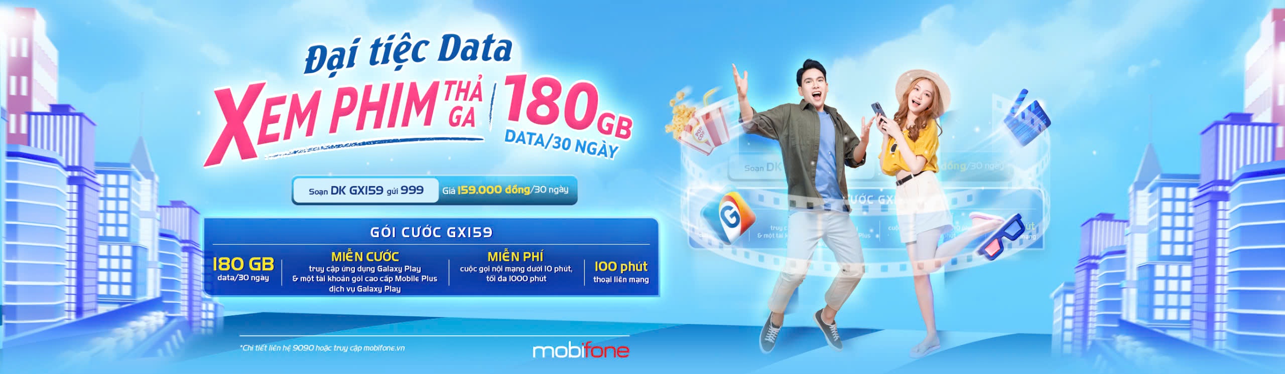Chương trình dành cho tất cả khách hàng của Galaxy Play khi đăng ký các Gói cước độc quyền kết hợp giữa Mobifone và Galaxy Play, sẽ nhận ngay Gói Galaxy Play Mobile Plus và miễn phí Data khi sử dụng ứng dụng Galaxy Play trên điện thoại.
